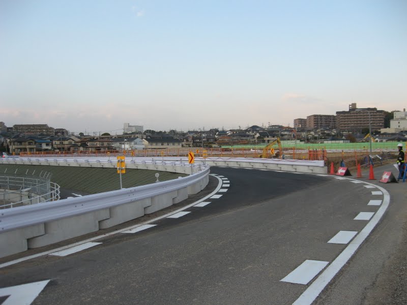 5年後開通予定の4車線化工事に向け、現況車線の絞込みとして